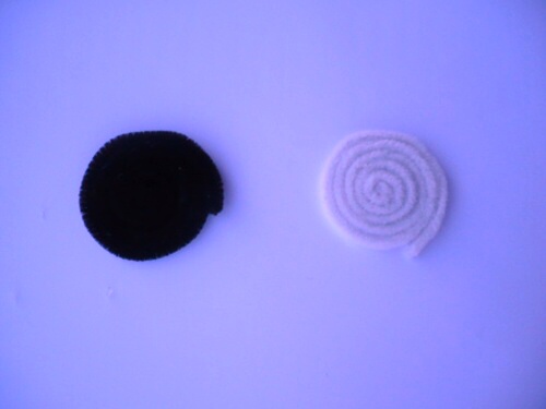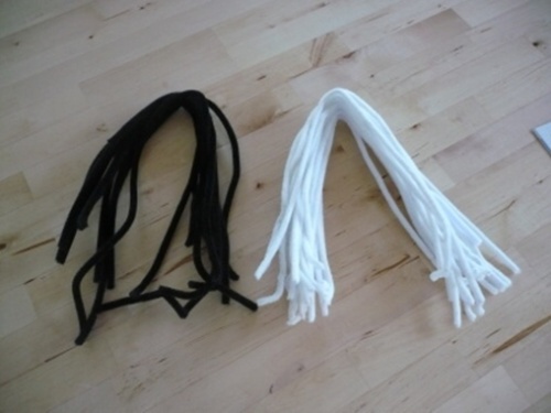 1. Připravíme si dvě barvy plyšových drátků.