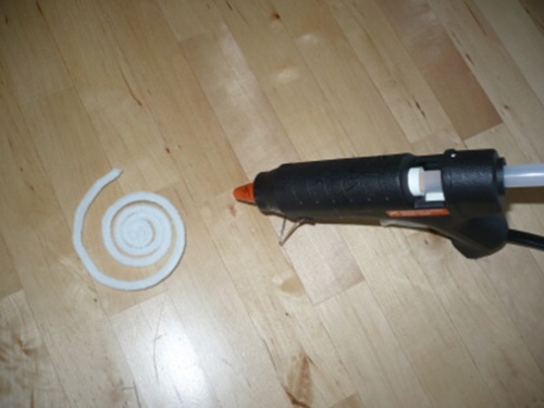 2. Drátky stočíme a pomocí tavné pistole slepíme.