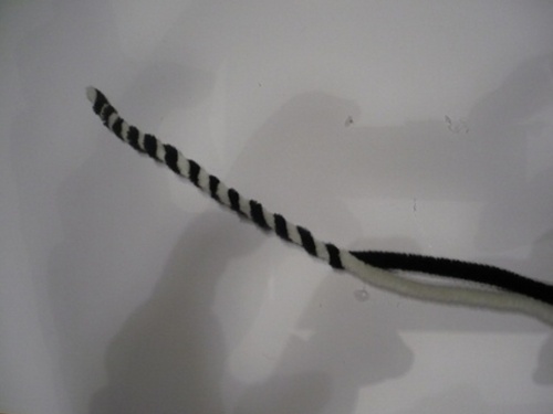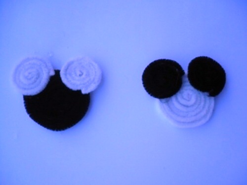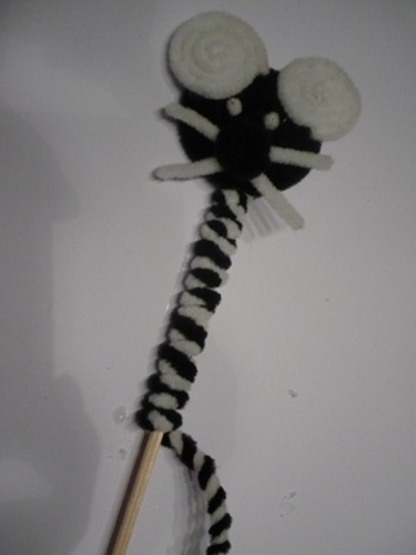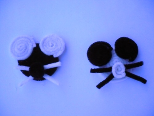 3. Stočíme drátky jiné barvy uši, vousy, čumáček a oči – vše opět dobře přilepíme a přilepíme je opět tavnou pistolí.
