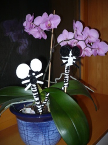 4. K takto připravené hlavičce, přilepíme tavnou pistolí 2 špejle, které jsme omotali spletenými drátky.